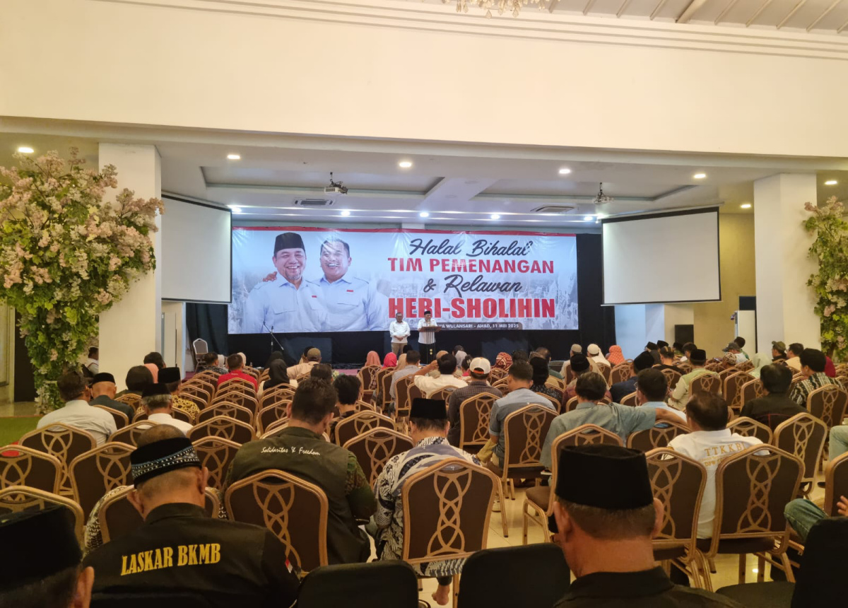 Relawan dan tim pemenangan Heri-Sholihin melakukan acara halal bihalal di Graha Hartika, Kota Bekasi, Minggu (11/5/2025).