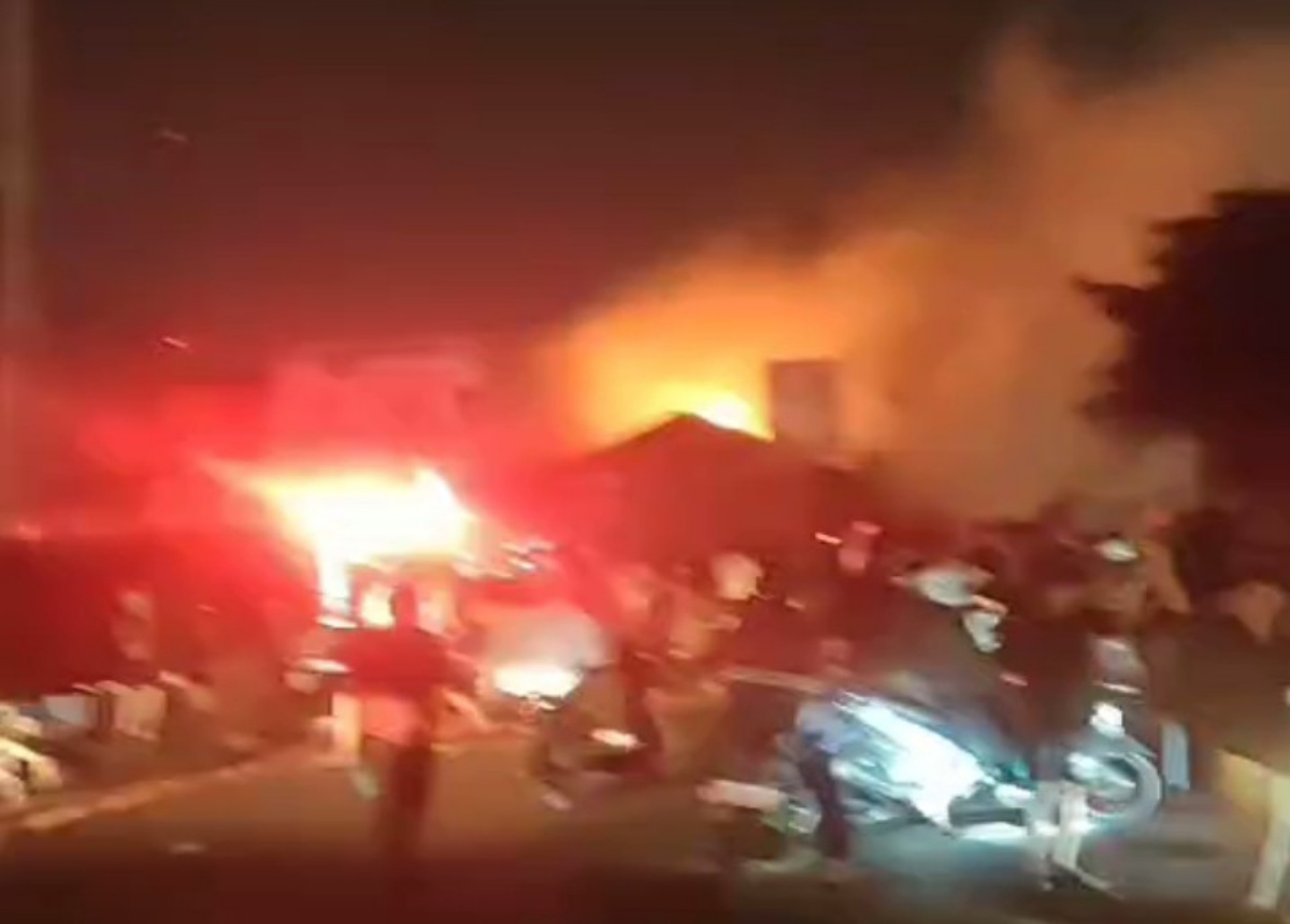 Kepulan asap tebal terlihat membumbung tinggi ke udara, sementara suara teriakan warga bercampur dengan sirene mobil pemadam kebakaran yang berdatangan ke lokasi.